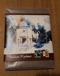 Feinste Vollmilch-Haselnuss-Krokant Schokolade 70g von BIO ART AG Seeham/Salzburg, Fair Trade. Mit Kunstbild der Stille Nacht Kapelle von Magdalena Eder.