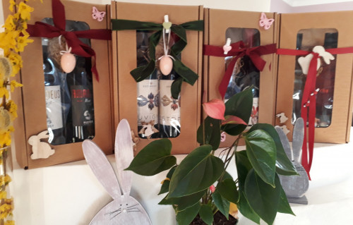 Ausgewählter Bio-GIN mit Tonic im liebevollen Geschenkkorb oder der österliche Genusskorb mit österreichischem Spitzenwein und Genussprodukten von Bio-Art, Hasenfit und Sonnenmoor sowie Blumen von der Meisterfloristik Oberndorf.