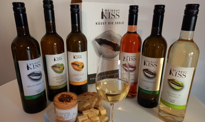 Welschriesling, Chardonnay, Chardonnay Vincent (maischevergoren), Muskat & Friends (Cuvèe aus Muskat, Chardonnay und Welschriesling), "Sweet Kiss" (Chardonnay Spätlese Selektion) und "Pink Marie", ein fruchtiger Zweigelt Rosè finden sich in diesem speziellen 6er Karton.