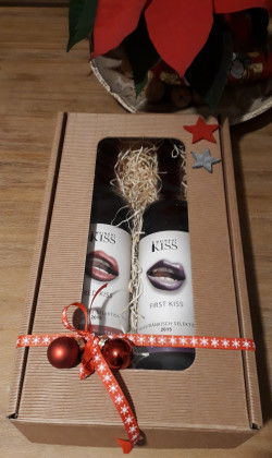 weihnachtlicher Geschenkkarton mit zwei Flaschen Qualitätswein 0,75 l vom Weingut Kiss/Burgenland